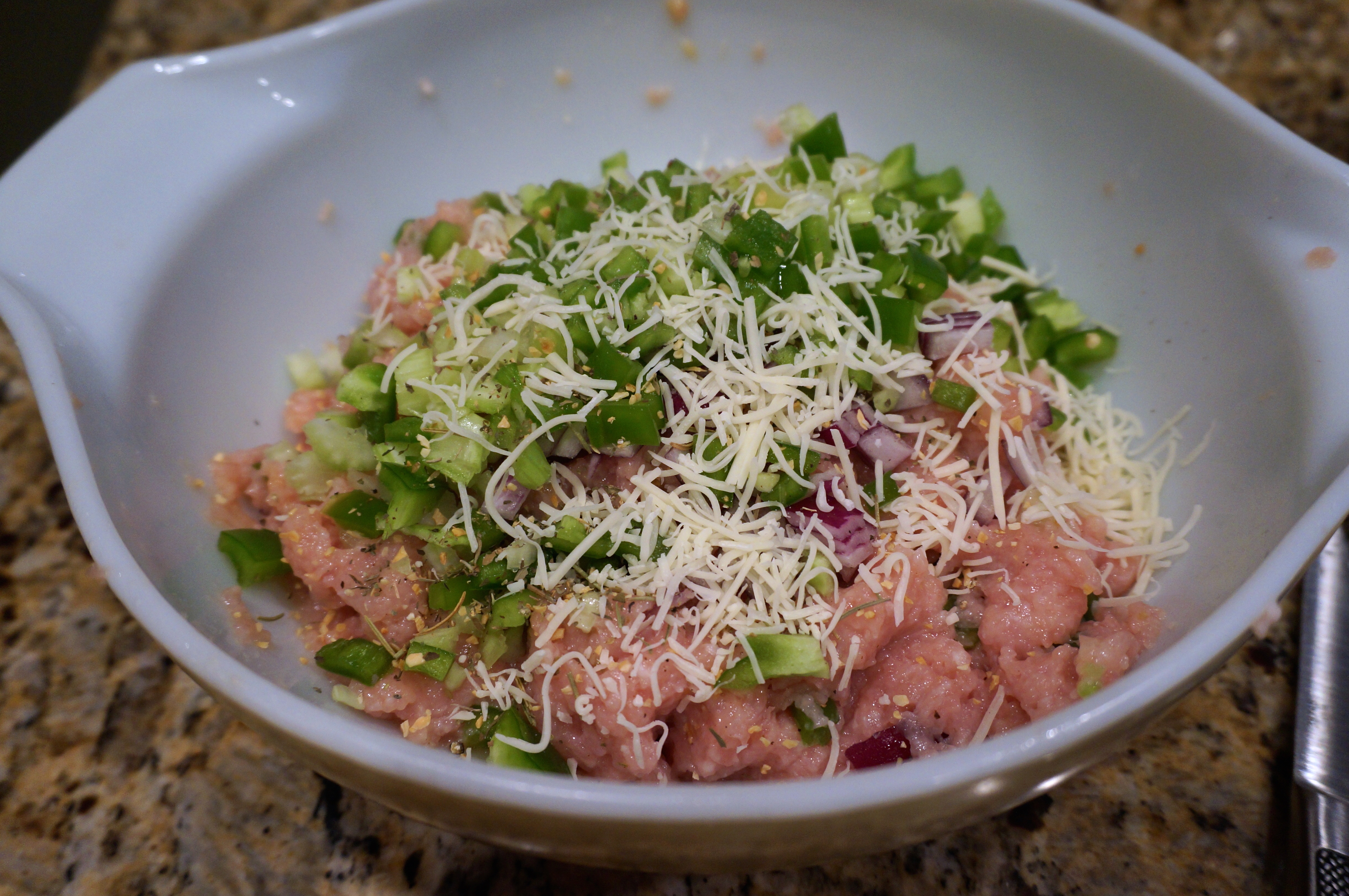 With Memorial Day upon us, I have been in the barbecue spirit. I’m ready for burgers, hotdogs, pasta salad and a nice cold beer to wash it all down with. 😉 Rather than make a classic beef burger with american cheese, I decided to have a little bit of fun and experiment with a turkey burger filled with plenty of delicious fixings.