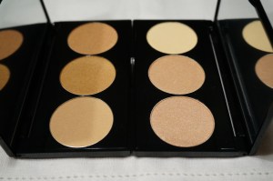 The palettes are $35 each. They come with 3 gorgeous shades and a generous mirror. Each shade allows you to customize your glow, from subtle highlight to a stunning sparkle. They are as follows: