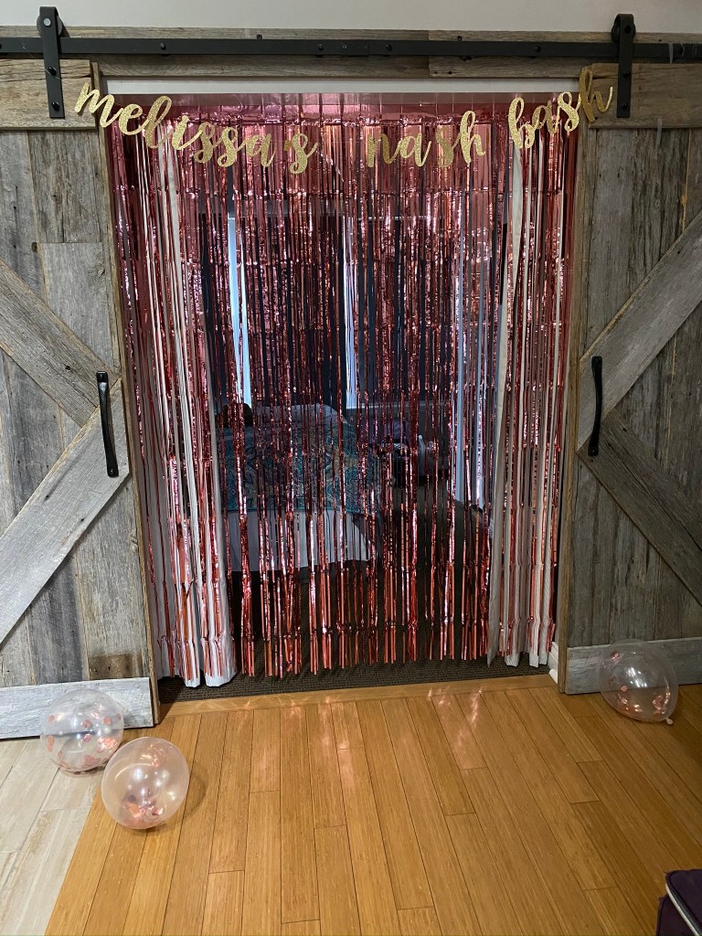 We stayed at the cutest AirBnB off-Broadway. Although it was a one-bedroom, there was lofted space with a bed, a pullout couch, and another bed, so the 7 of us slept comfortably. The apartment was decorated with London accents throughout; I love a good theme. Plus, cute barn doors were leading to the bedroom, which made for a cute photo backdrop. I mean, you can’t Nash Bash without taking a few grams!